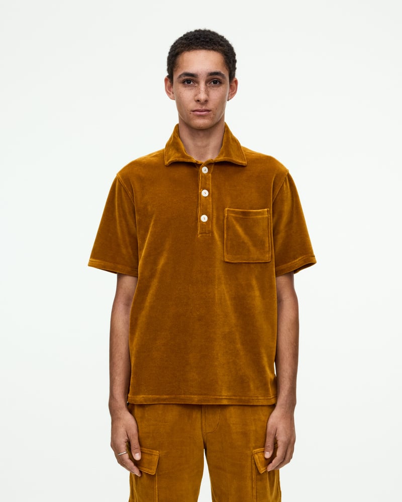 Burnt Orange Velours-Langarmhemd