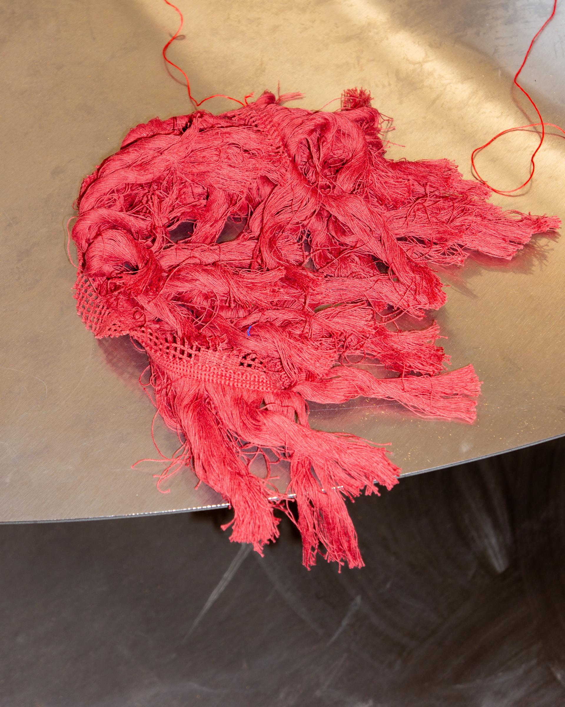 Cotton pants hand-dyed through layered dye baths. Finished with added linen and cotton embroidery that builds on the garment’s original stitched details. All Dye Studio pieces are singular works, each made only once.