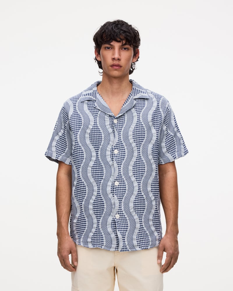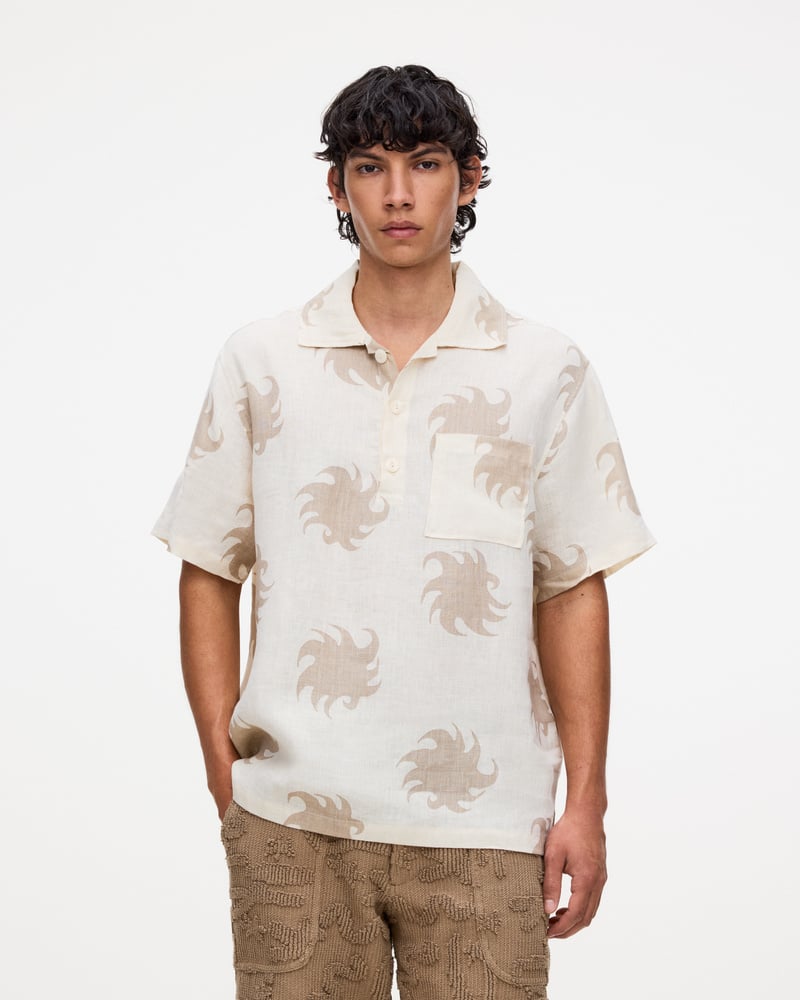 OAS collection of men's clothing are made to be worn during your leisure hours. Comfortable cuts and unique prints made in our Stockholm studio. Crafted from fabrics like terry, linen, lyocell, merino wool and cotton, in different compositions, the range covers swim shorts, shirts, pants, robes, towels, and anything else you want to live life in.