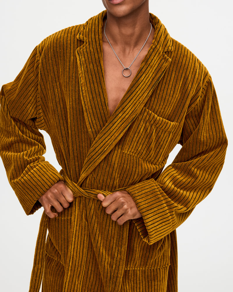 Las batas de velour para hombre de OAS están diseñadas en siluetas relajadas con colores y estampados de temporada.