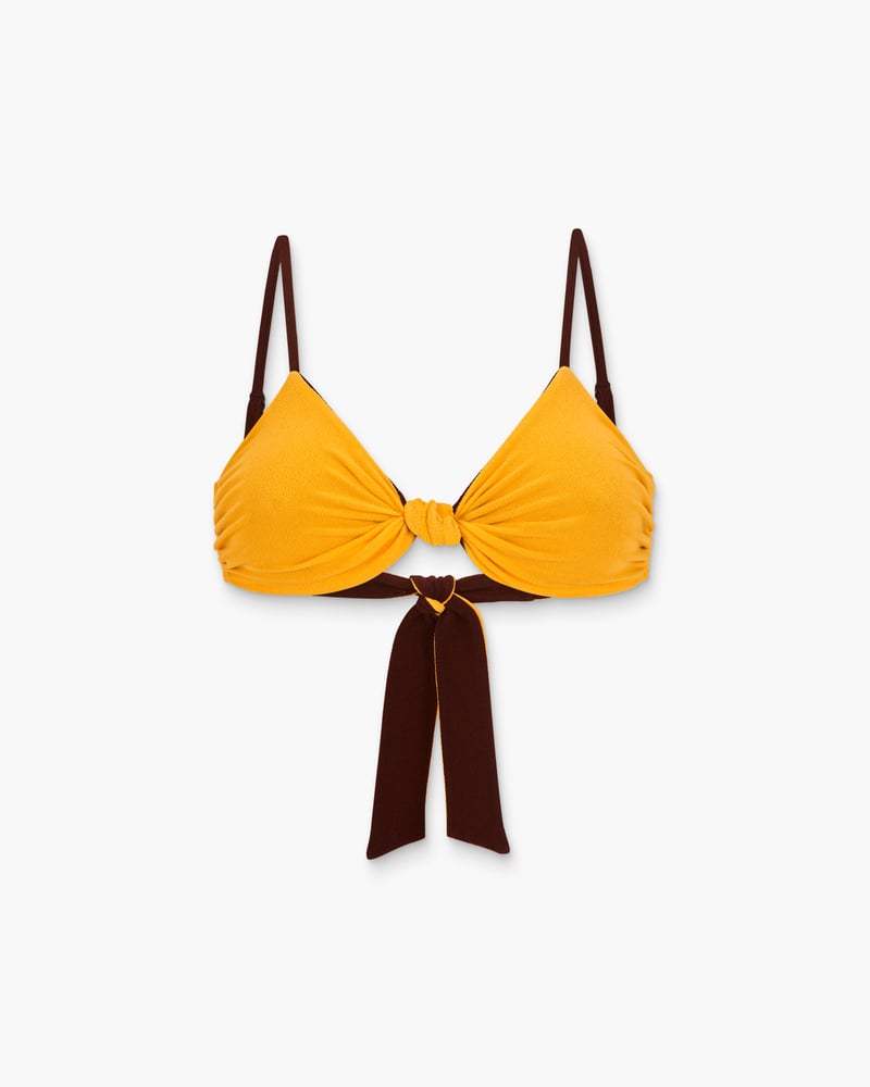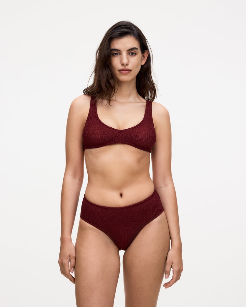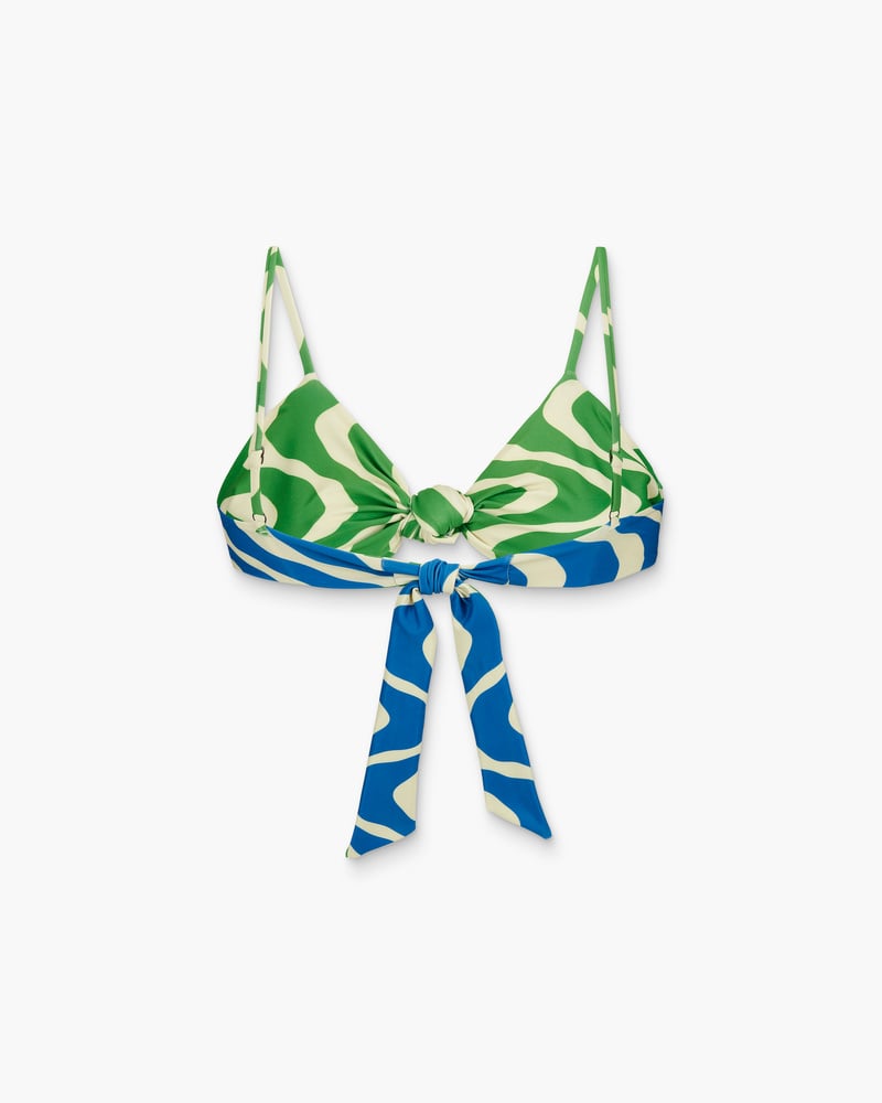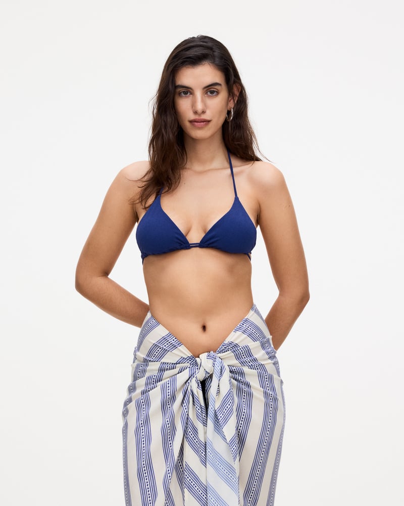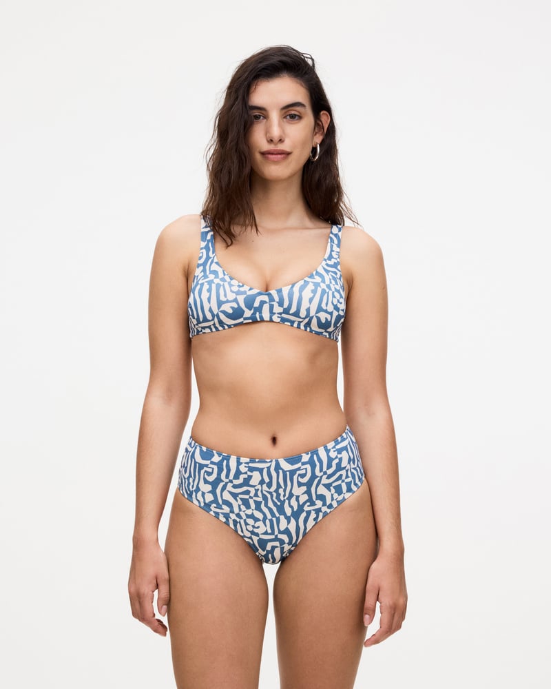 OAS collection of women's bikinis includes two-piece styles crafted from recycled stretch fabrics with a soft sheen. Explore bikinis in solid colors and prints, featuring adjustable straps, tie details, and reversible options. Select styles are also available in crinkled and terry-like textures.