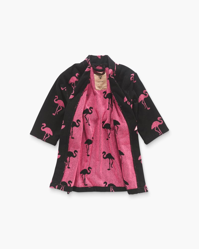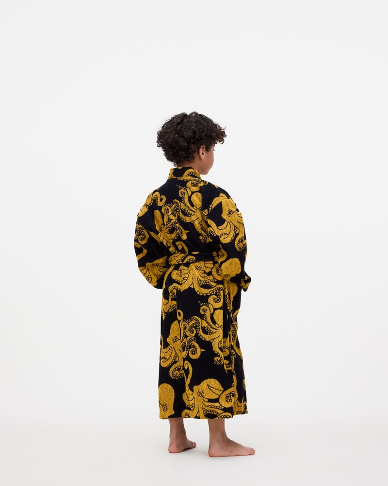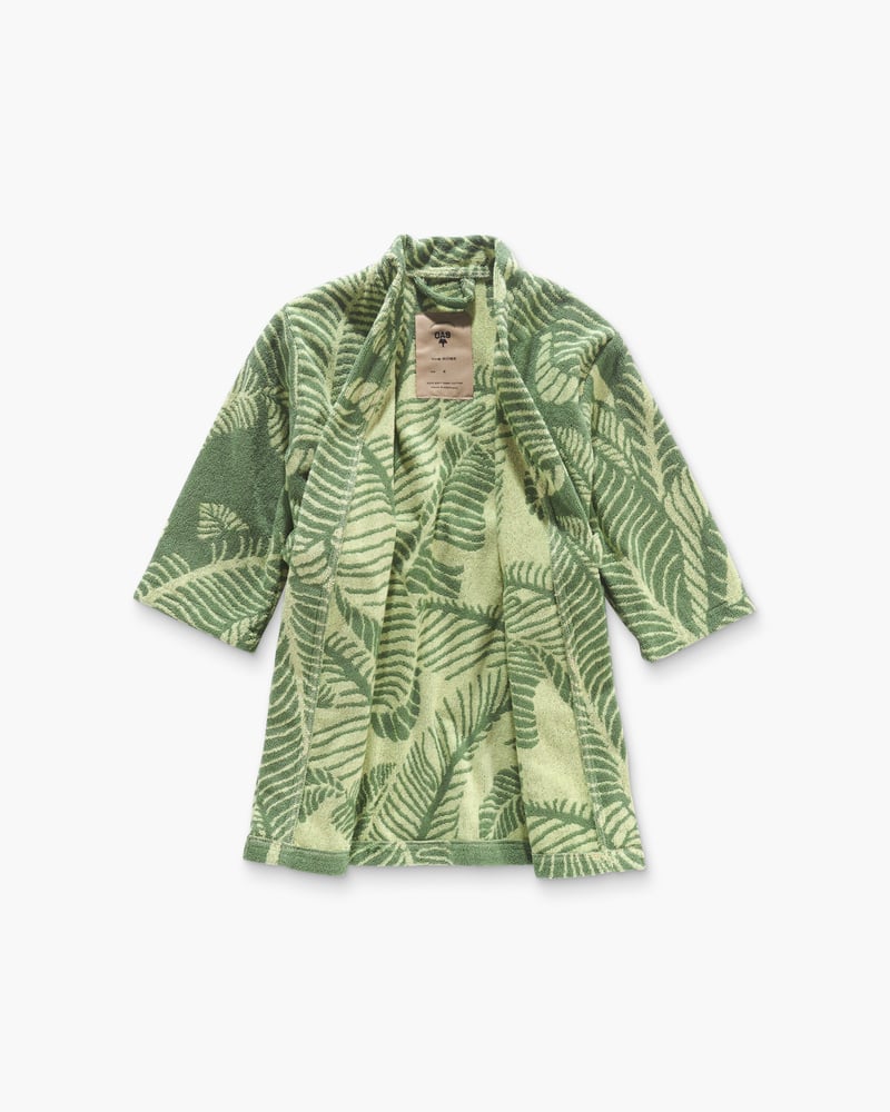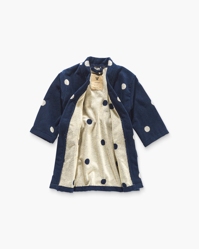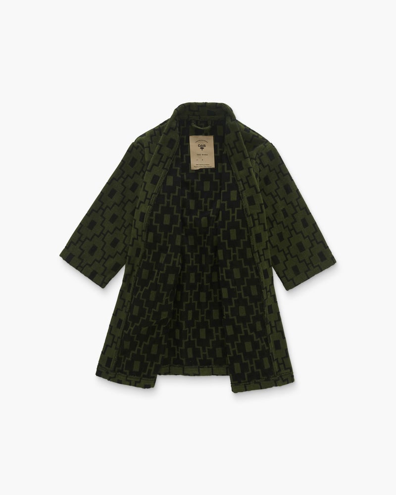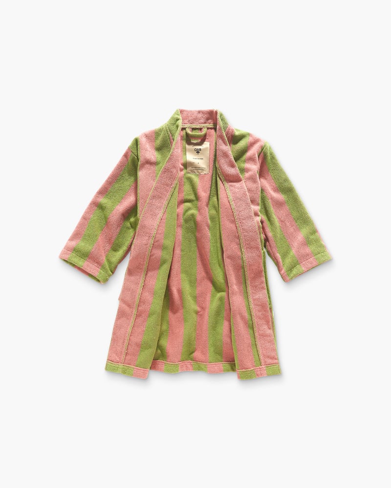 OAS collection of kids robes features short terry styles crafted from plush, jacquard-woven cotton. Designed with two front pockets, an attached belt, and a hanging loop, the robes offer softness, absorbency, and ease after water activities. Available in a range of prints and colors.